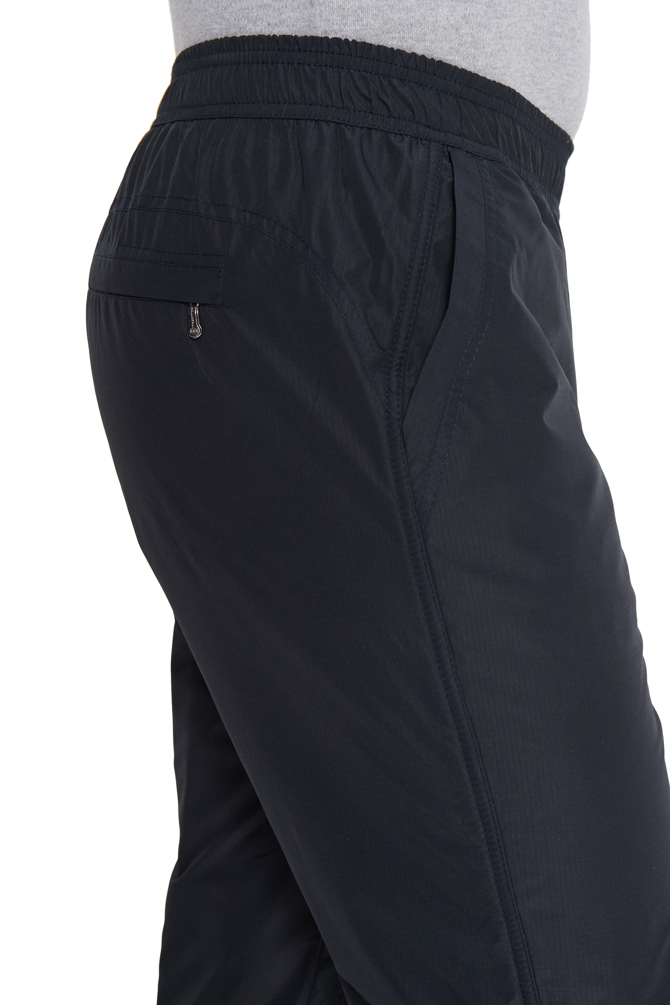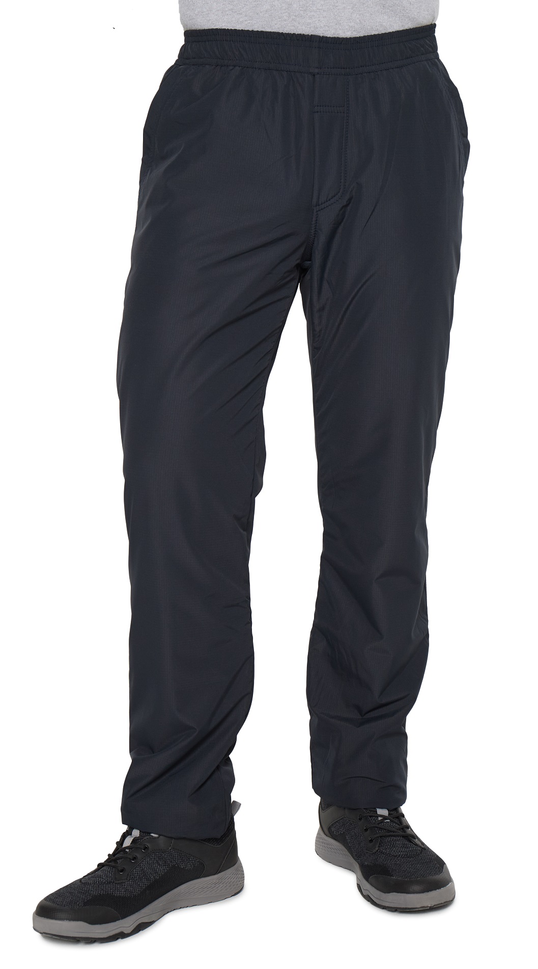 Зимние брюки с поясом на резинке. С внутренней стороны пояс фиксируется шнурком. Наружная ткань мягкая, приятная на ощупь, имеет в своём составе армирующие нити, придающими ей дополнительную прочность и создают фактурный рисунок в виде мелких квадратов. Не грубеет на морозе. Ламинированное покрытие на внутренней стороне ткани обеспечивает защиту от ветра и влаги. Утепляющая подкладка из плотного флиса на трикотажной основе не вытягивается, держит форму, а благодаря антипиллинговой обработке не скатывается даже после многочисленных стирок. Брючины немного заужены книзу. Имитация гульфика. Передние карманы прямые открытые, отстрочены вдоль линии входа. Сзади кокетка, ниже которой расположен карман на молнии под листочкой.