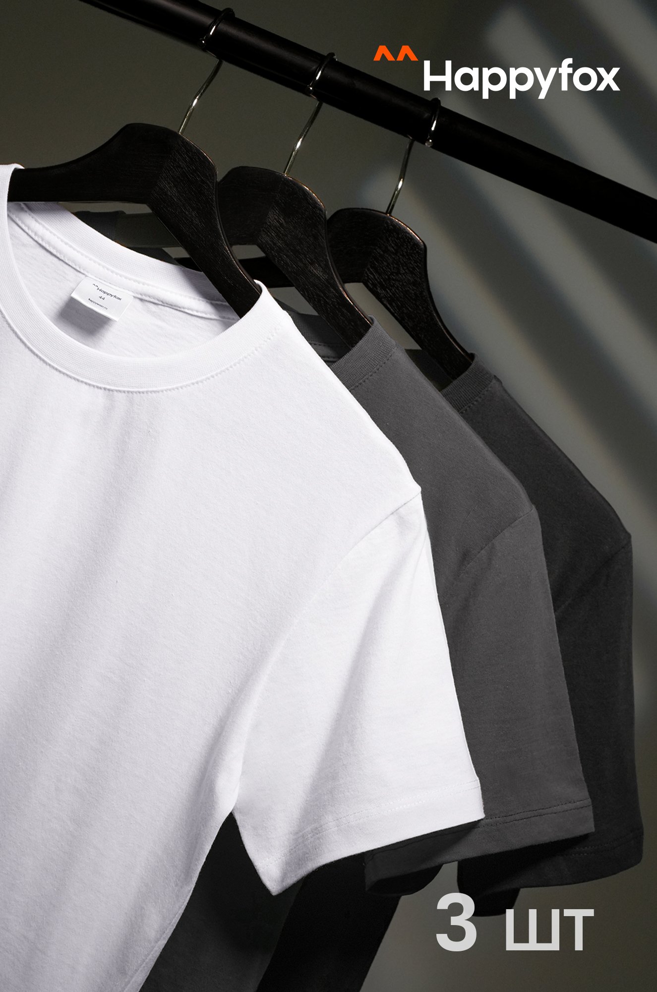 Набор из 3 мужских футболок представлен в разных цветах: черный, белый, темно-серый.