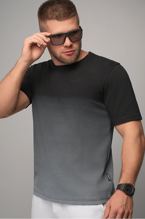 Оригинальные оттенки для уверенного образа! Стильная мужская футболка с градиентным эффектом выполнена из трикотажной ткани кулирная гладь. Хлопковая футболка прямого кроя с круглым вырезом — настоящая классика. Универсальный фасон и мягкий трикотаж обеспечат комфорт.