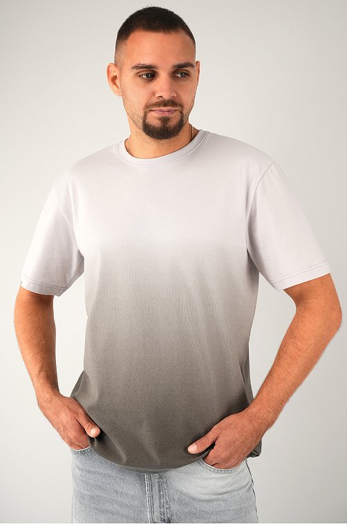 Оригинальные оттенки для уверенного образа! Стильная мужская футболка с градиентным эффектом выполнена из трикотажной ткани кулирная гладь. Хлопковая футболка прямого кроя с круглым вырезом — настоящая классика. Универсальный фасон и мягкий трикотаж обеспечат комфорт.