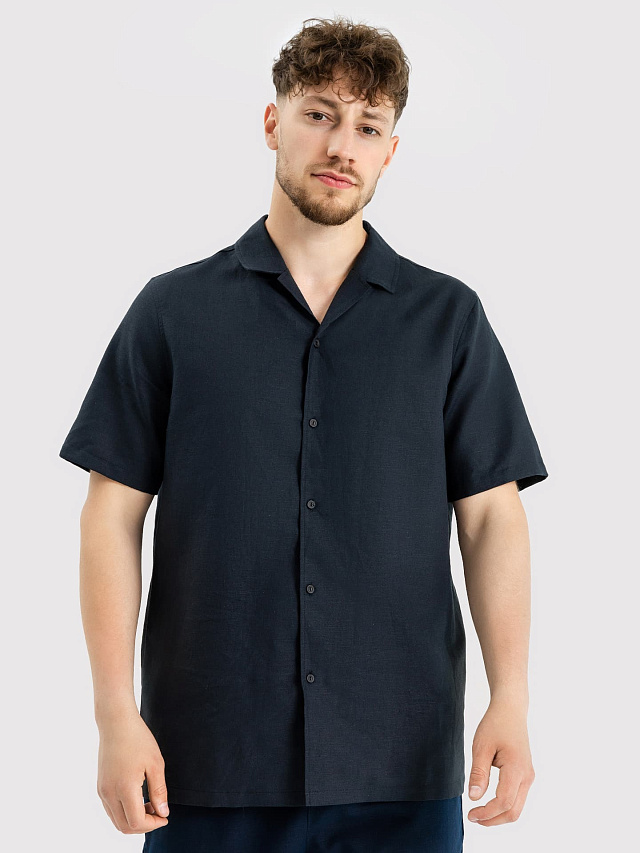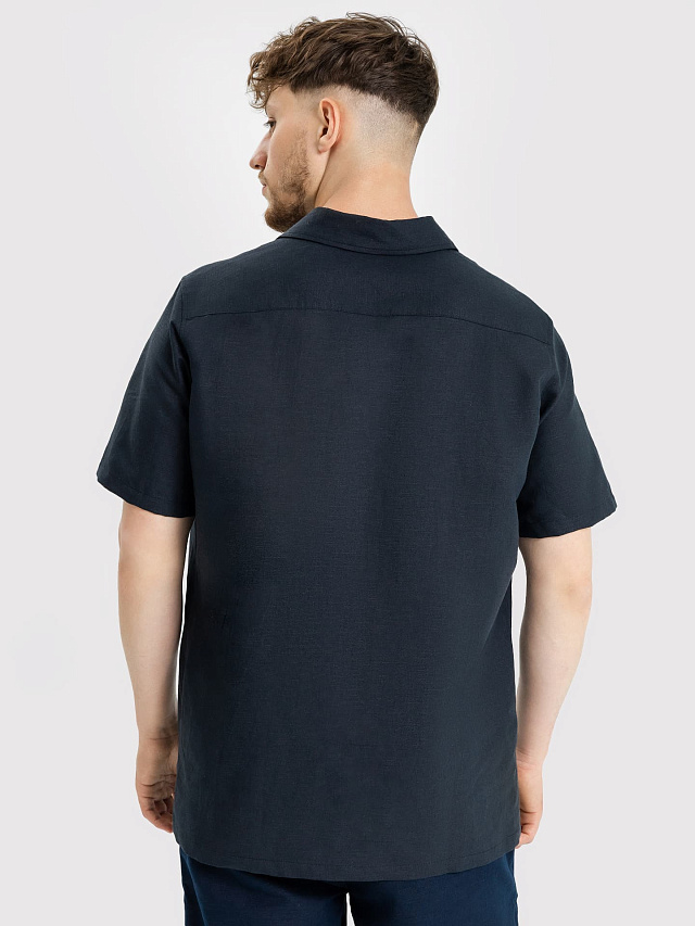 Мужская рубашка черная из хлопка и льна