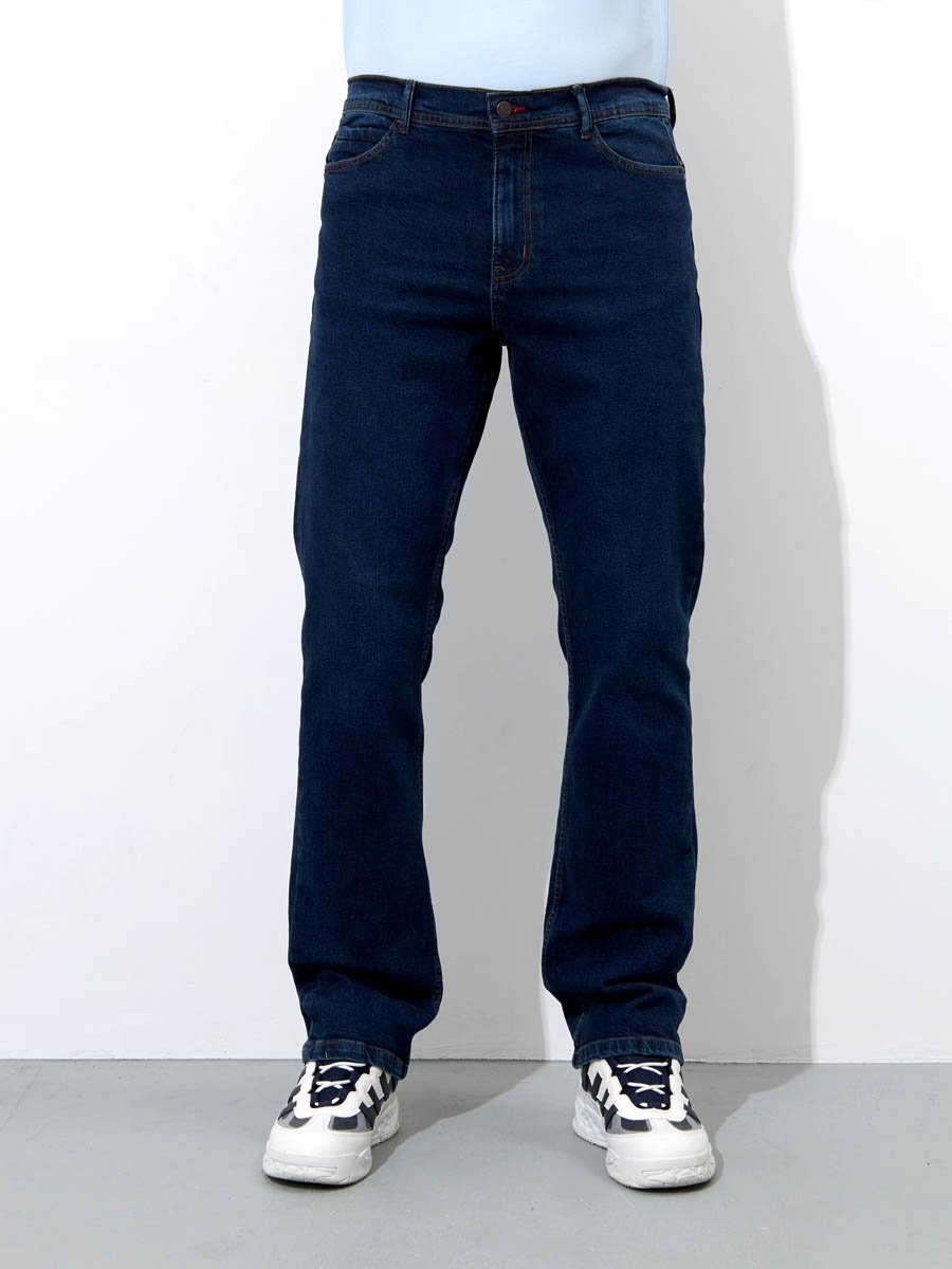 Мужские модные джинсы с пятью карманами. Посадка Regular fit (полуоблегающие по бедру), высокая талия. Застежка на молнии. Выполнены из слабоэластичной ткани denim comfort stretch. Средняя стирка с потёртостями и "усами" спереди и потёртостями сзади.