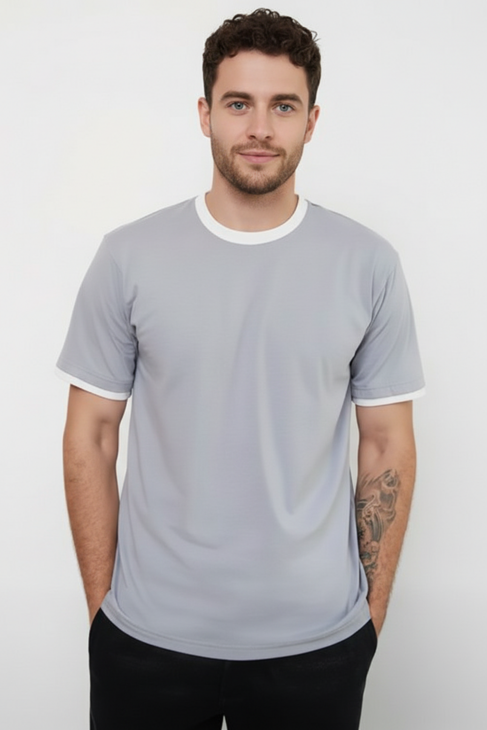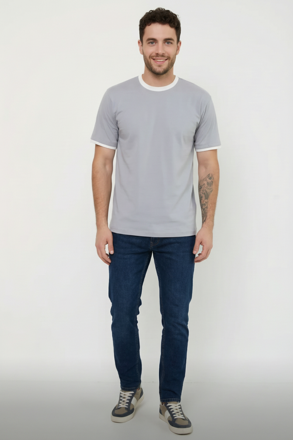 Универсальные мужские футболки прямого кроя с короткими рукавами и классическим круглым воротником. Отличительной чертой моделей являются контрастные белые окантовки на вороте и манжетах, благодаря чему футболки выглядят современно и стильно. Изделия выполнены из мягкой и комфортной ткани, приятной к телу, что обеспечивает удобство при повседневной носке. Такие футболки подходят как для активного отдыха, так и для городского стиля. Цвет: серый+белый;темно-синий+белый; Материал: кулирка;кулирка; Состав: .