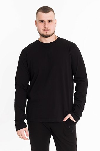 Лонгслив мужской выполнен из однотонной кулирки. Модель с длинными рукавами и круглым вырезом горловины, оформленным планкой. Лонгслив-идеальная основа для любого образа, отлично сочетается с джинсами, брюками и другими предметами гардероба.