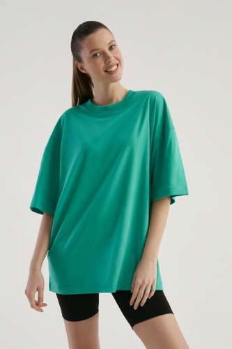 Футболка прямого силуэта. Укрепление по горловине спинки. Горловина из рибаны, по переду горловины отстрочка.