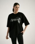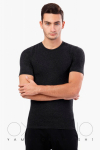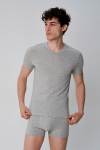 Футболка прямого силуэта. Укрепление бейкой плечевых швов и горловины спинки. Горловина из рибаны, по переду горловины отстрочка.