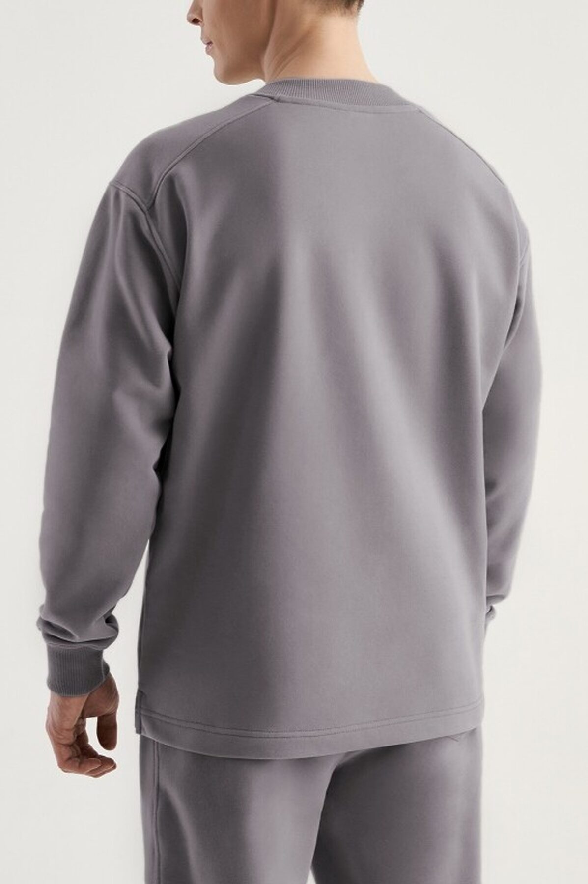 Свитшот мужской. Кокетки по переду и спинке. В боковых швах небольшие разрезы, обработанные киперной лентой. Втачной рукав. Швы притачивания кокеток и втачивания рукава отстрочены. Горовина и манжеты из кашкорсе.