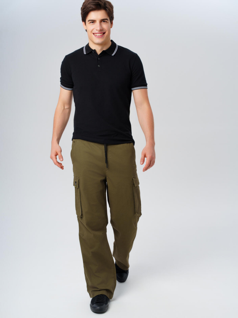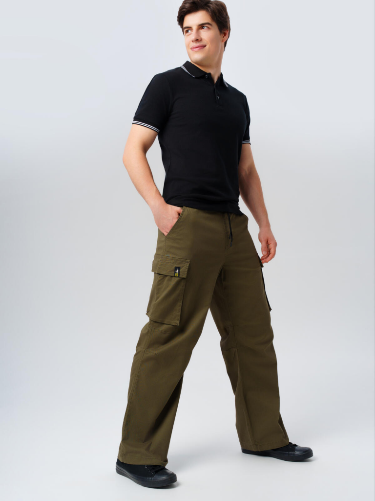 Брюки-карго мужские. Штаны на резинке со шнурком. RELAXED FIT - свободный крой. Высокая посадка. Высокое содержание хлопка. Удобные боковые и накладные карманы. Можно составить family look c детским вариантом брюк аналогичного дизайна. 98% хлопок, 2% эластан
