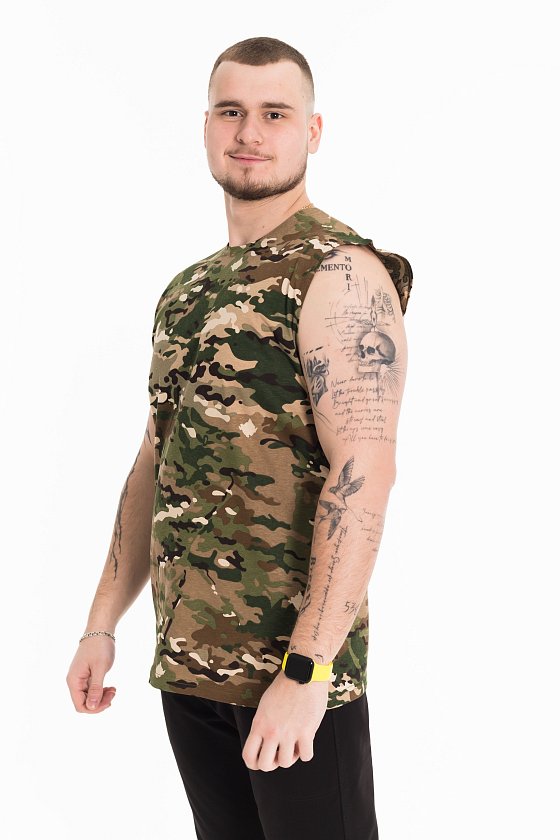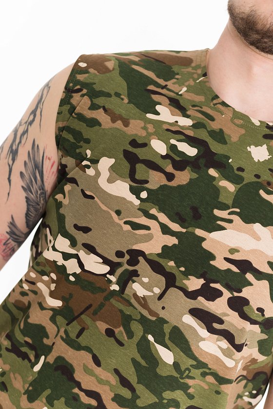 Подтельняшка мужская (камуфляж) выполнена из стопроцентного хлопкового полотна. Прямого кроя, горловина с круглым вырезом, плечики широкие.