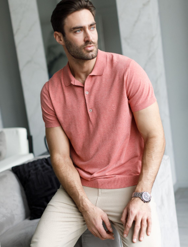 Поло терракотового цвета с эффектом меланж тонкой вязки из 100% хлопка. Отборные волокна хлопка исключительно мягкие, поэтому изделие легкое и шелковистое на ощупь. Идеальное решение для весны и лета. Офисного дресс-кода и повседневного образа. Модель дополнили вышитым логотипом бренда.