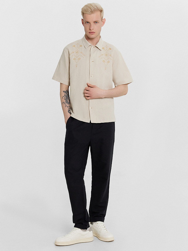 Рубашка мужская бежевая с орнаментом