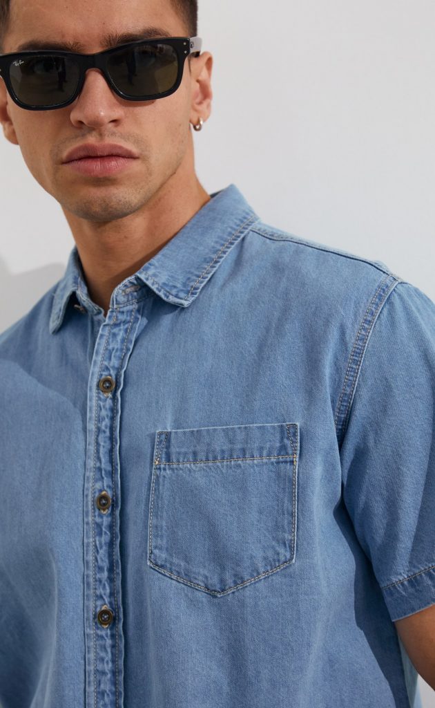 Наименование для сайта: Рубашка мужская джинсовая с коротким рукавом F311-1240 голубая