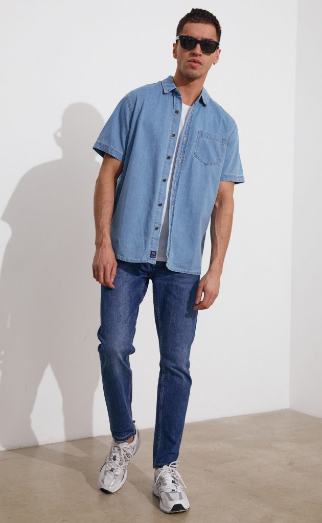 Рубашка мужская джинсовая с коротким рукавом от бренд Fine Joyce голубого цвета. Мужская рубашка выполнена из высококачественного хлопка, застежка на пуговицы, на груди накладной карман. Прямой крой, ткань из мягкого хлопка пропускает воздух, что позволяет чувствовать себя комфортно. Все рубашки от Fine Joyce окрашены натуральными, не агрессивными красителями, которые экологичны и безопасны, ткань достаточно износостойкая, после стирки не садятся, а после длительного ношения не вытягиваются. Рубашка из денима приятно ощущается на теле и делает вещь невероятно удобной. Представлены размерами от M до 3XL (56). Мужские рубашки оптом можно приобрести на нашем сайте. В карточке товара Вы найдете размерные характеристики, которые помогут Вам определиться с размером. Fine Joyce динамично развивающийся российский бренд. Fine Joyce — высокое качество по оптимальной цене!