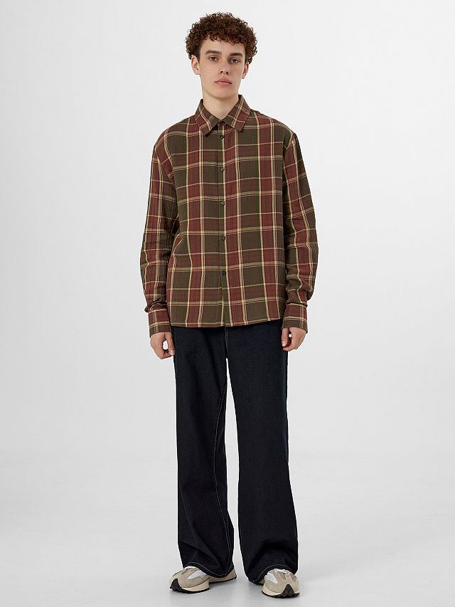 Мужская рубашка в клетку коричневого оттенка – универсальная модель, которая станет основой стильного гардероба. Эта коричневая мужская рубашка из хлопка с длинным рукавом сочетает в себе классическую клетку и современный крой, создавая идеальный баланс между повседневностью и элегантностью. Прямой силуэт обеспечивает комфортную посадку, а натуральный хлопок гарантирует приятные тактильные ощущения и отличную воздухопроницаемость.