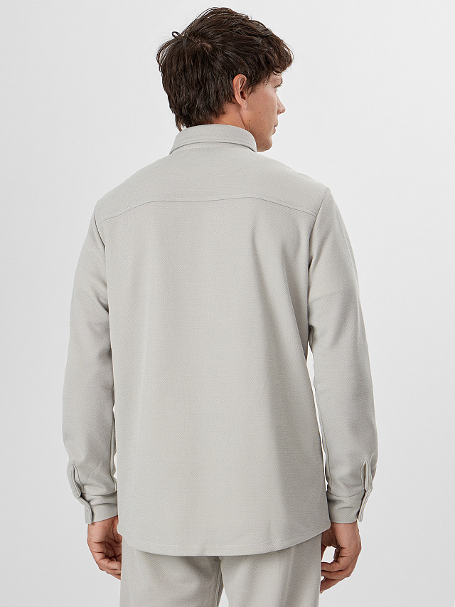 Мужская рубашка из трикотажного интерлока в стиле жакета — это удобная и стильная вещь, идеально подходящая для повседневной носки. Свободный силуэт придает образу расслабленность и не стесняет движения, а плотный и мягкий материал обеспечивает комфорт и практичность. Горловина оформлена рубашечным воротником, который добавляет строгости и завершенности. Застежка на кнопках по центру делает модель современной и удобной в использовании. Спереди расположены накладные карманы, создающие акцент и усиливающие практичность. Спущенная линия плеча подчеркивает стильную неформальность кроя, а длинные рукава с манжетами на кнопках вносят легкий элемент делового стиля. Нижний край изделия аккуратно обработан швом вподгибку, что добавляет аккуратности. Такое сочетание деталей делает рубашку универсальной — ее можно носить как самостоятельно, так и поверх футболки или водолазки.