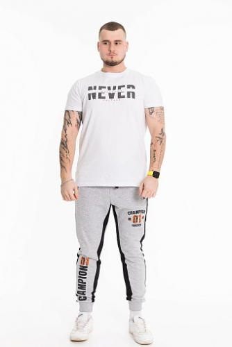 Брюки выполнены из чёрного футера с лайкрой. По бокам карманы и два накладных кармана с клапанами на липучках. Пояс на резине и шнуре. Низ брюк на манжетах, в качестве декора по бокам молнии.