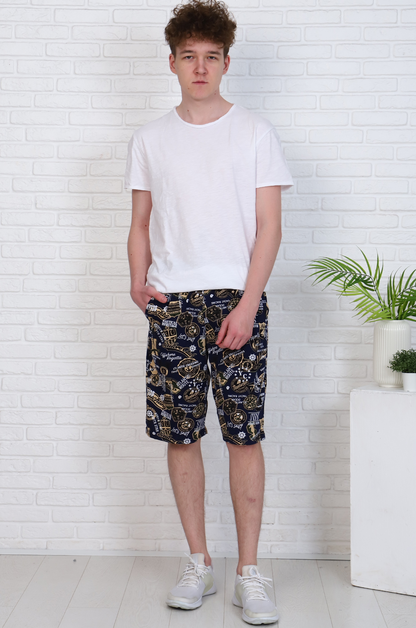 Мужские хлопковые шорты комфортной длины - удобный вариант для дома и отдыха! Пояс на широкой резинке, удобные боковые карманы.