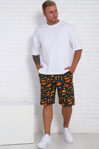 Мужские спортивные шорты больших размеров с удобным широким поясом выполненном на специальной машине. Изделие дополнено втачными карманами и декорировано контрастными лампасами.