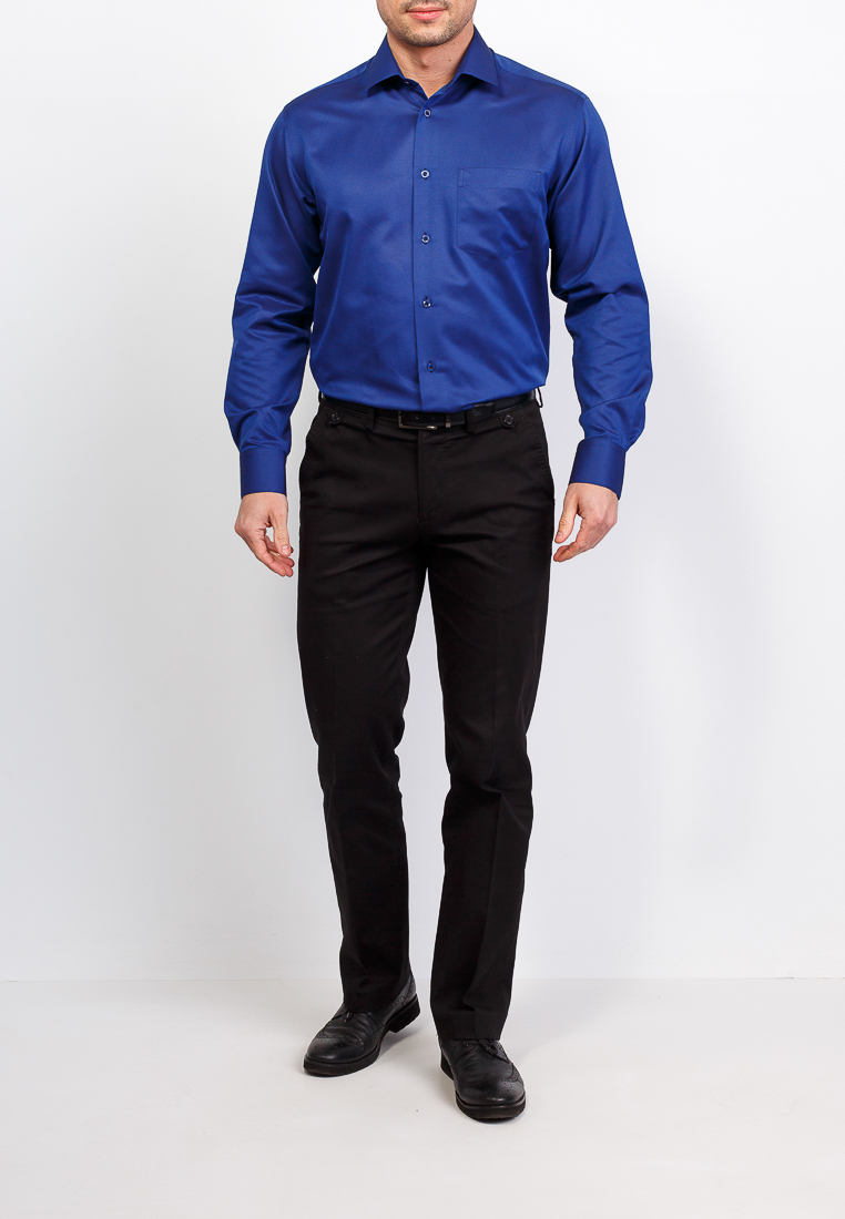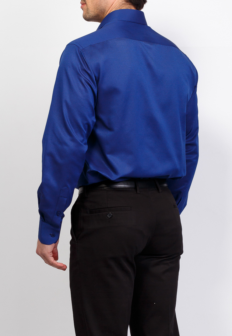 Цвет: Синий Рисунок: Однотон с фа..показатьктурой Состав: 80% хлопок 20% полиэстер Модель: Классическая Ворот: Европейский маленький Караман: стандартный, слева, накладной Манжет: классический закругленный на пуговицах Силуэт: Прямой силуэт / Сlassic fitктурой