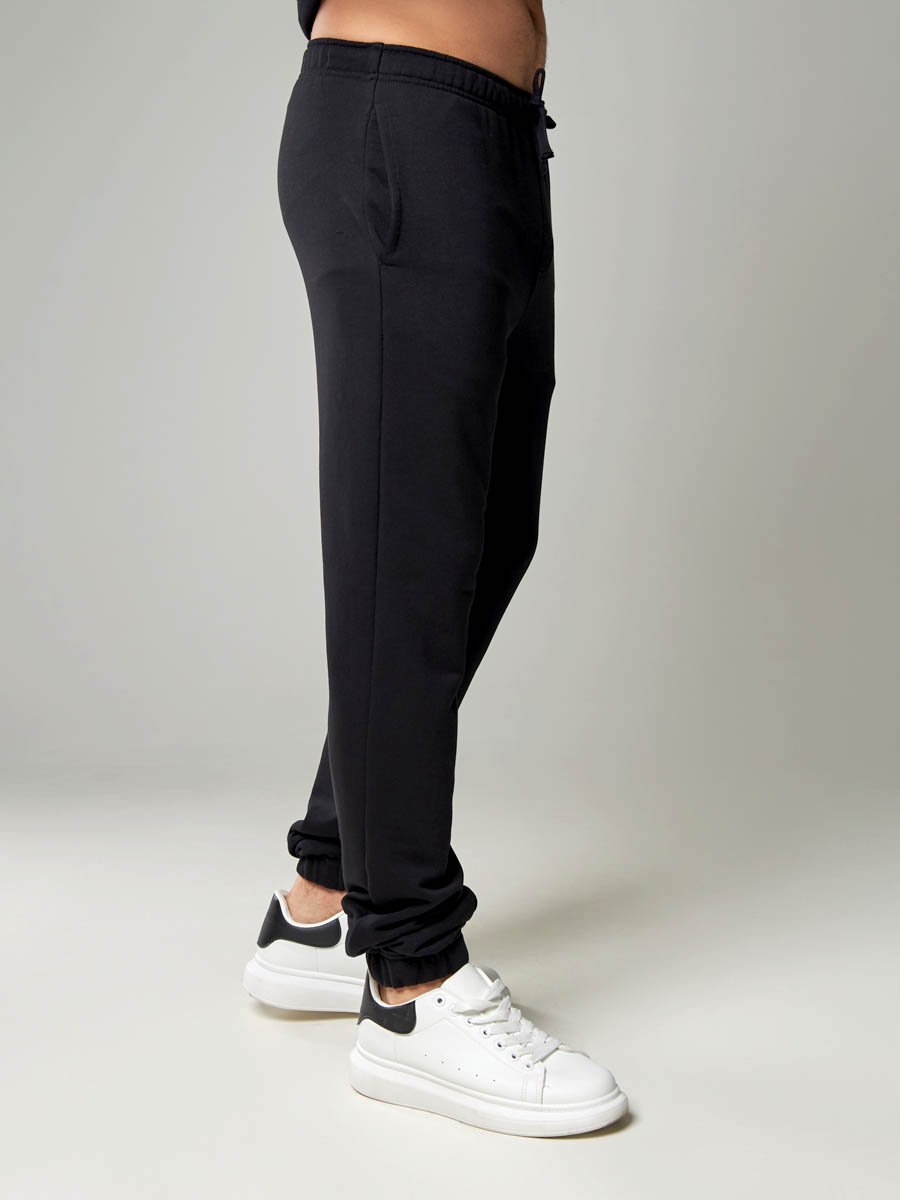 Трикотажные мужские брюки из хлопка с добавлением полиэстера, мягкие и приятные на ощупь, не сковывают движения, обеспечивая максимальный комфорт. На правой задней половинке накладной карман. В боковых швах так же имеются карманы. По поясу и низу брюки собираются широкими резинками. Дополнительно в поясе имеется шнур.