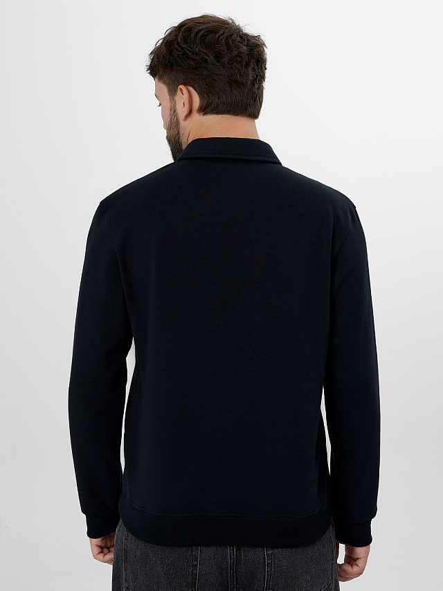 Мужской черный свитшот — это базовая вещь для создания современного образа. Модель выполнена из плотного хлопкового материала с добавлением полиэстера для сохранения формы.