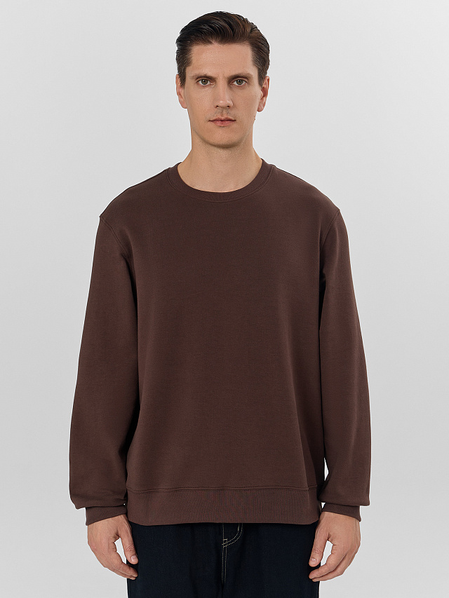 Мужской свитшот из трикотажного материала интерлок — это удобная и стильная модель для повседневного образа. Свободный прямой крой обеспечивает комфорт и свободу движений, а округлая горловина, обработанная обтачкой из рибаны, добавляет аккуратности и сохраняет форму.