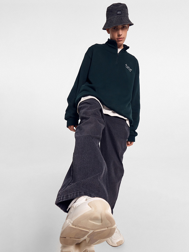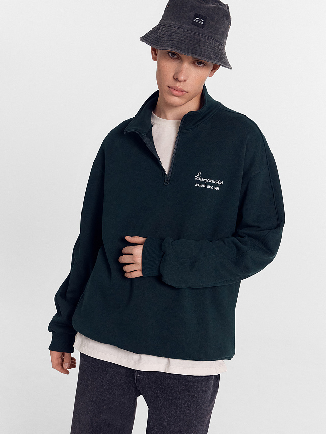 Мужская толстовка на молнии идеальна для стильных повседневных образов. Модель свободного силуэта с воротником-стойкой и длинными рукавами с эластичными манжетами обеспечивает комфорт и практичность. Легко надевается и снимается благодаря застежке-молнии. Линия плеча слегка спущена, что добавляет модели современный и расслабленный вид. Она выполнена из футера без подчеса, что делает ее легкой и приятной к телу, сохраняя при этом тепло. Эта толстовка станет прекрасным дополнением вашего гардероба, обеспечивая уют и стиль каждый день.