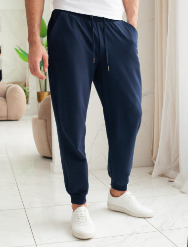 Брюки-джоггеры выполнены из эластичного футера. Изделие с двумя боковыми и одним задним карманом украшено логотипом бренда. Посадка регулируется шнуром, продетым в широкий эластичный пояс. Мягкий и плотный материал хорошо пропускает воздух, а наличие ПЭ в составе способствует формоустойчивости и легкости изделия. Сочетается в костюме с худи U49.036