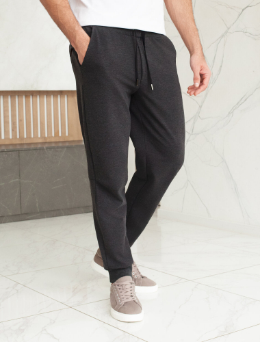 Брюки-джоггеры выполнены из эластичного футера. Изделие с двумя боковыми и одним задним карманом украшено логотипом бренда. Посадка регулируется шнуром, продетым в широкий эластичный пояс. Мягкий и плотный материал хорошо пропускает воздух, а наличие ПЭ в составе способствует формоустойчивости и легкости изделия. Сочетается в костюме с худи U49.039