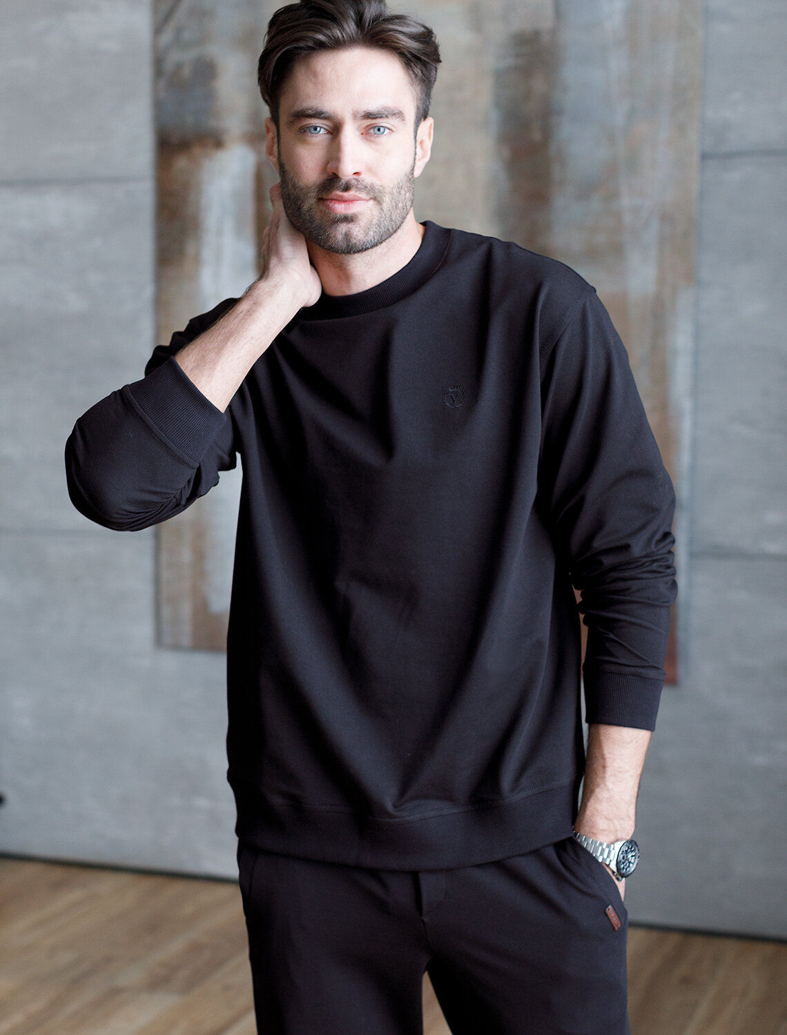Джемпер с круглым воротом выполнен из премиального эластичного футера двухнитки. Свободный силуэт не сковывает движений. Модель дополнена вышивкой с фирменным логотипом бренда. Сочетается в костюме с брюками U44.007.