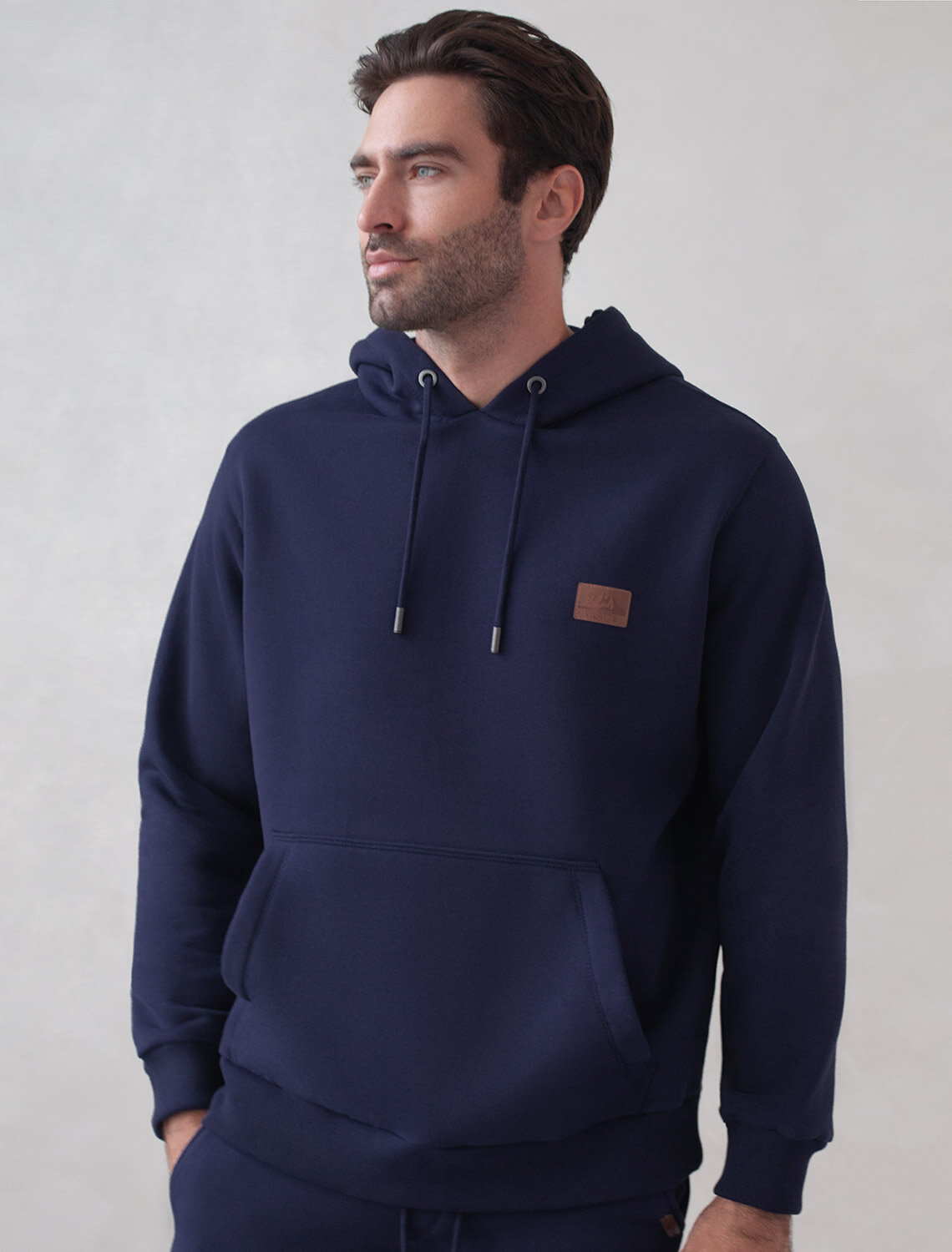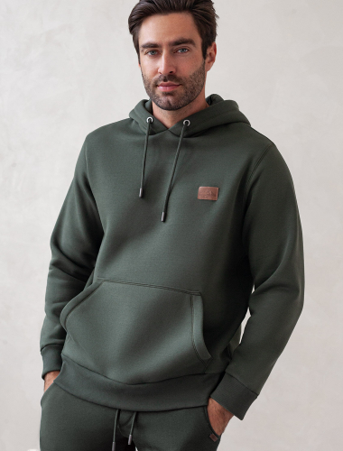 Худи выполнено из премиального эластичного футера трехнитки с теплым начесом. Уютная и классическая модель с капюшоном и карманом-кенгуру дополнена нашивкой с логотипом бренда из эко-кожи. Свободный крой не сковывает движений. Высококачественная фурнитура цвета темное серебро. Изделие сочетается в костюме с брюками U44.006