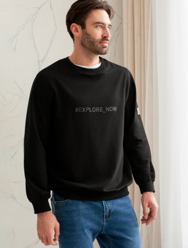 Джемпер выполнен из легкого футера с эластаном. Авторский принт выполнен красками с устойчивым покрытием. Мягкий материал хорошо пропускает воздух и поддерживает оптимальный микроклимат даже в жаркое время года. На рукаве нашивка логотип бренда из эко-кожи.