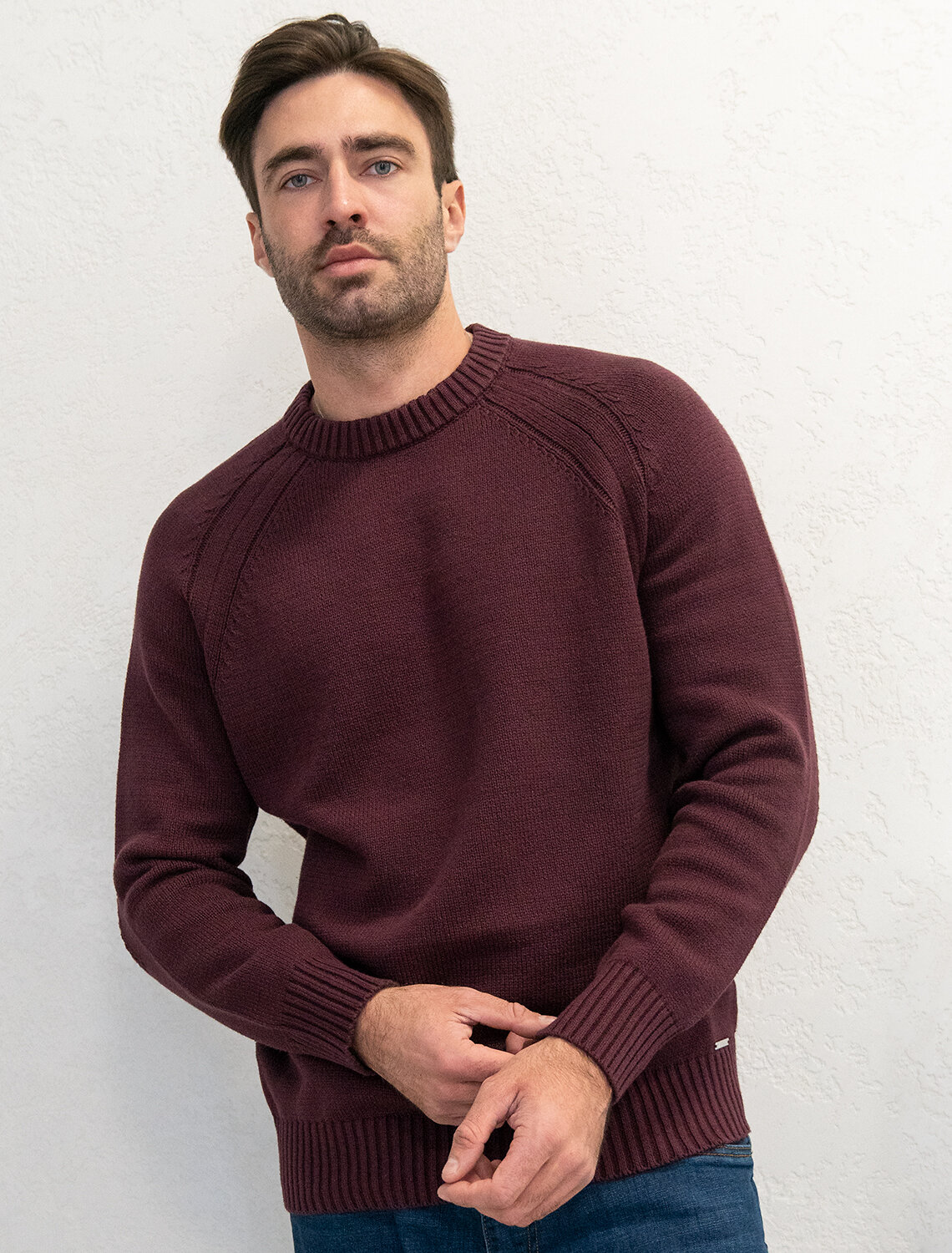 Джемпер связан из мягкой хлопковой пряжи с добавлением акрила. Теплая модель с классическим круглым вырезом удачно дополнит и повседневный образ с джинсами, и комплект для офиса с нестрогим дресс-кодом. Хлопковая пряжа не колется к телу и не перегревает. Акрил в составе способствует долговечности изделия и меньшей сминаемости. Внизу джемпера нашивка бренда из эко-кожи