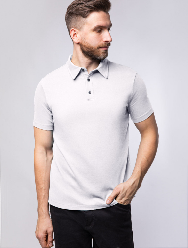 Поло выполнено из фактурного хлопка, которое обеспечивает комфорт даже в жаркое время года и почти не мнется. Контрастная планка застегивается на матовые серебряные пуговицы с логотипом бренда. Преимущество изделия — это добавление эластана в классический для поло материал «пике», что гарантирует безупречный комфорт и долговечность. Поло сочетается в паре со светлым денимом и чиносами, в офис с черными брюками.