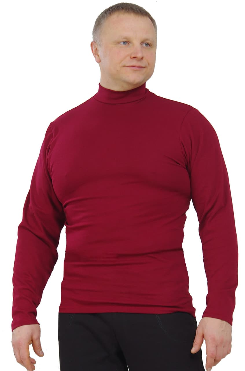 Отличная недорогая мужская водолазка выполнена из хлопкового полотна – рибана. Модель классическая, воротник-стойка.