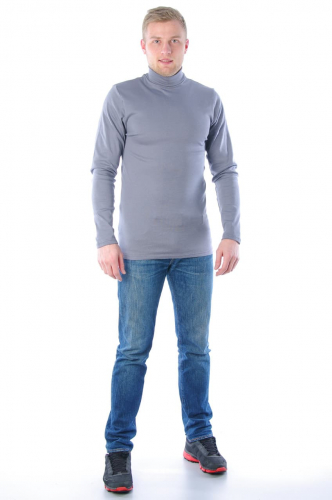 Отличная недорогая мужская водолазка выполнена из хлопкового полотна – рибана. Модель классическая, воротник-стойка.