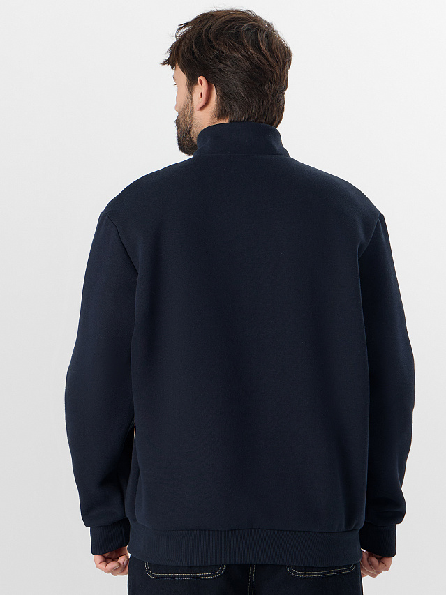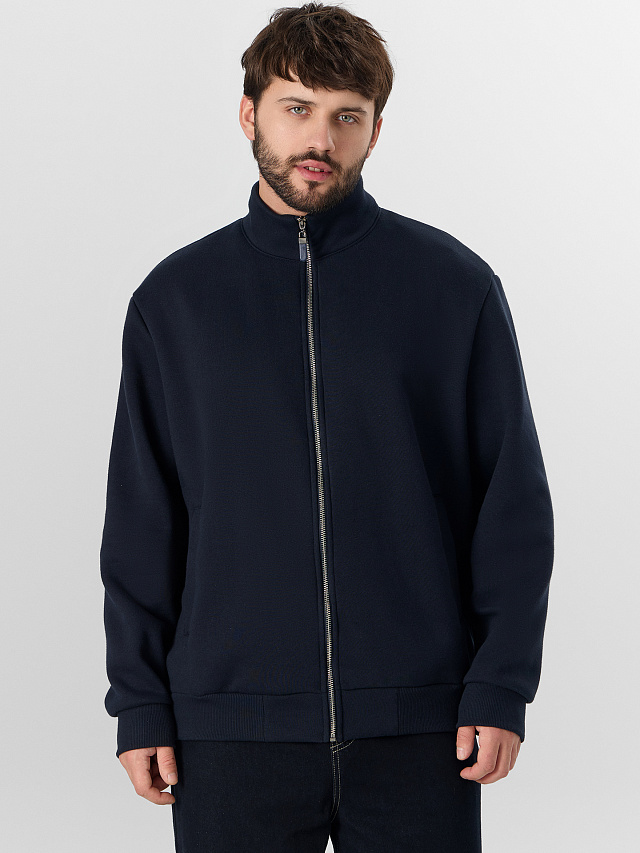 Синий мужской жакет на молнии создан для тех, кто ценит комфорт и практичность в повседневной одежде. Модель свободного прямого силуэта до середины бедер обеспечивает полную свободу движений и современный внешний вид. Удобная стойка из основного материала мягко облегает шею, не вызывая раздражения.