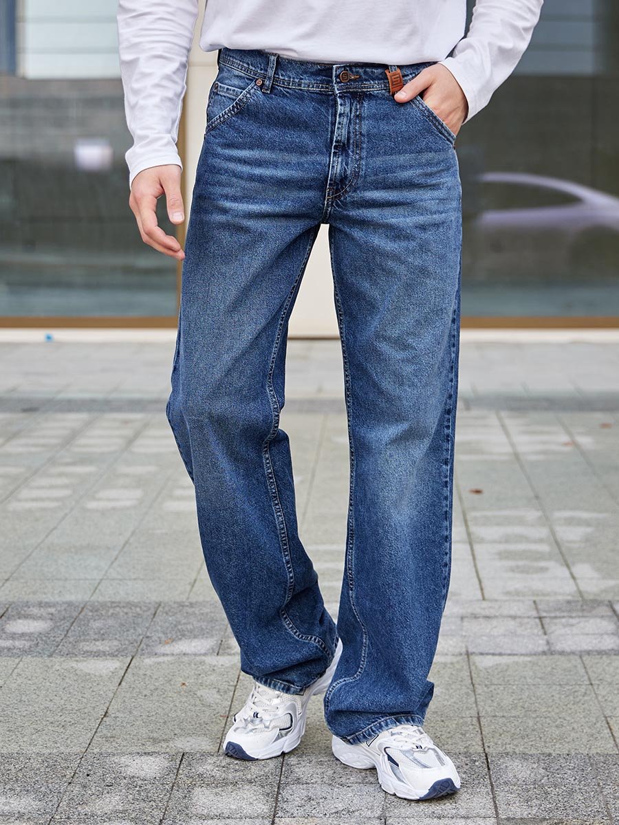 Окунитесь в эпоху легендарных 90-х с нашими винтажными джинсами! Эти мужские джинсы с пятью карманами, высокой посадкой, широким кроем штанин и с застежкой на молнию созданы для тех, кто ценит свободу движений и дизайн в стиле casual. Эта модель предлагает не просто одежду, а чувство уверенности и уникальный ретро образ, который снова на пике моды. Изготовлены из традиционного денима средней плотности. Постираны по технологии каменной стирки (stone wash), поэтому вы ощутите мягкость и комфорт с первой же примерки.