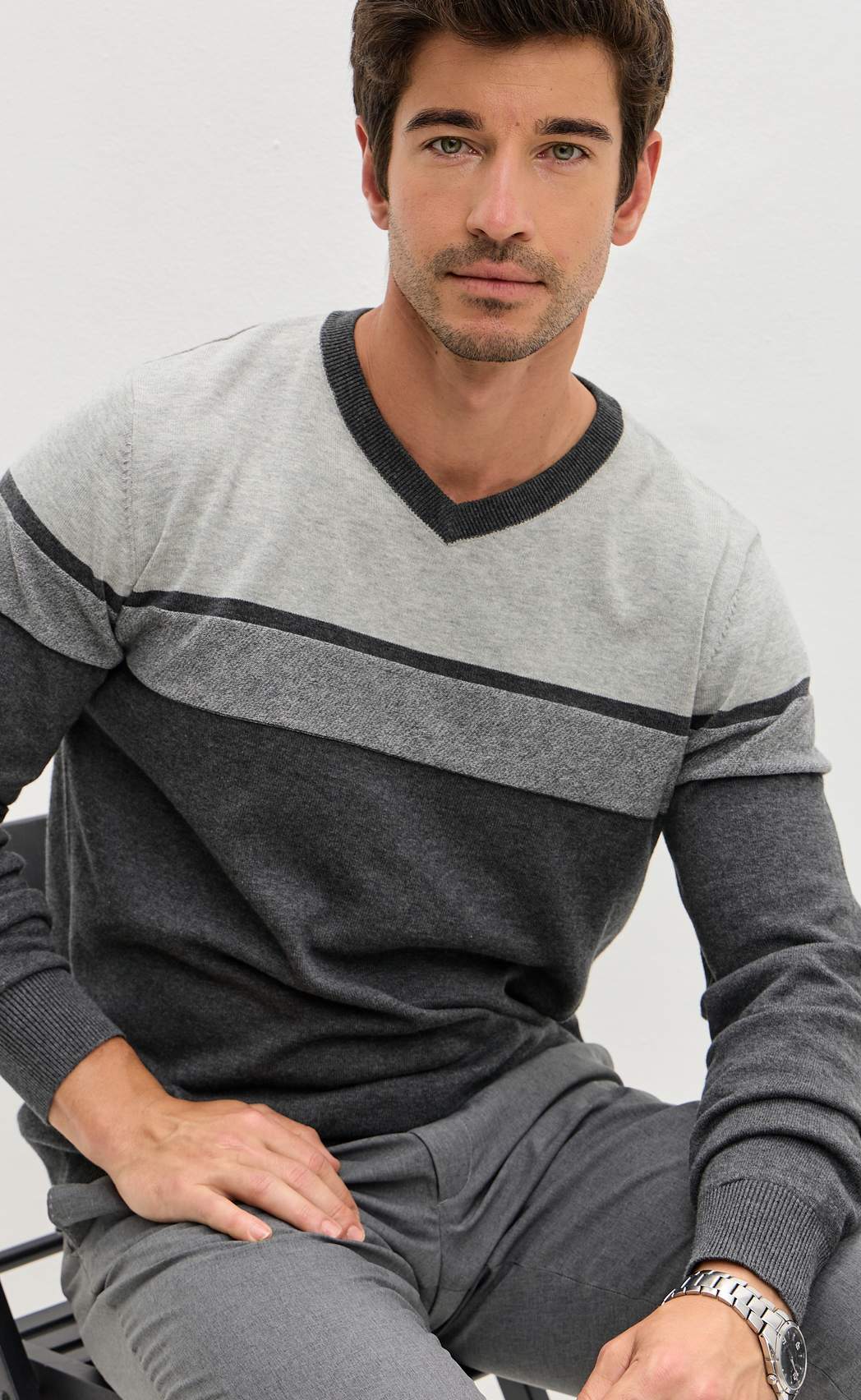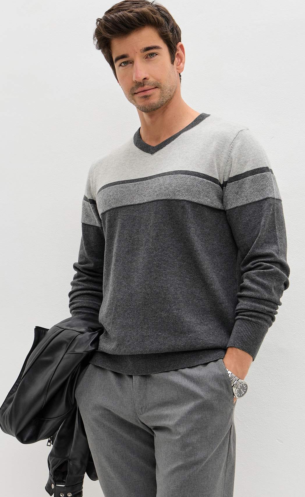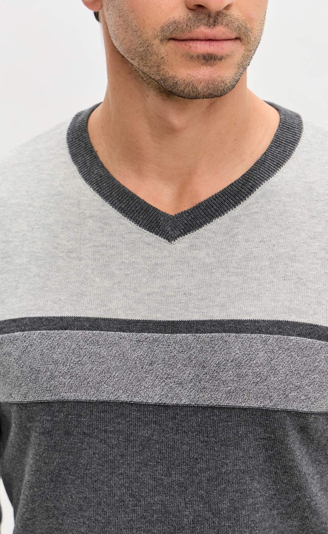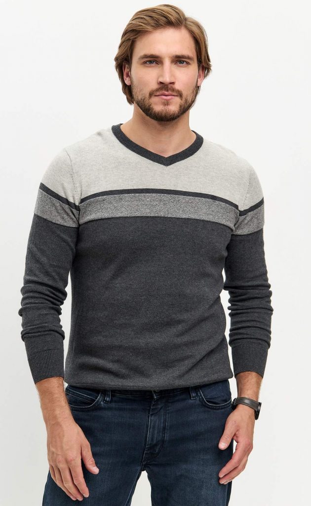 Пуловер мужской от бренда Fine Joyce с V-образным вырезом. Джемпер прямого кроя из приятного на ощупь трикотажного полотна, состоящего из стопроцентного хлопка с антипиллинговым эффектом. На данной ткани не образуются катышки, она не линяет, долгое время не теряет внешний вид, если стирать при температуре 30 С. Джемпер с длинным рукавом, низ рукавов отделан окантовкой в рубчик. Благодаря удобству и универсальности этот свитер найдет свое место в гардеробе любого мужчины. Благородные оттенки серого подчеркивают статус мужчины. Свитер подходит на любую погоду, является демисезонным вариантом на каждый день. Джемпер оптом от производителя поможет создать множество образов в стиле casual. Пуловер в полоску представлен в широкой размерной сетке, имеются и большие размеры с 56 по 62. Данную модель джемпера можно купить оптом от производителя. В карточке товара Вы найдете размерные характеристики, которые помогут Вам определиться с размером. Fine Joyce динамично развивающийся российский бренд. Fine Joyce — высокое качество по оптимальной цене!