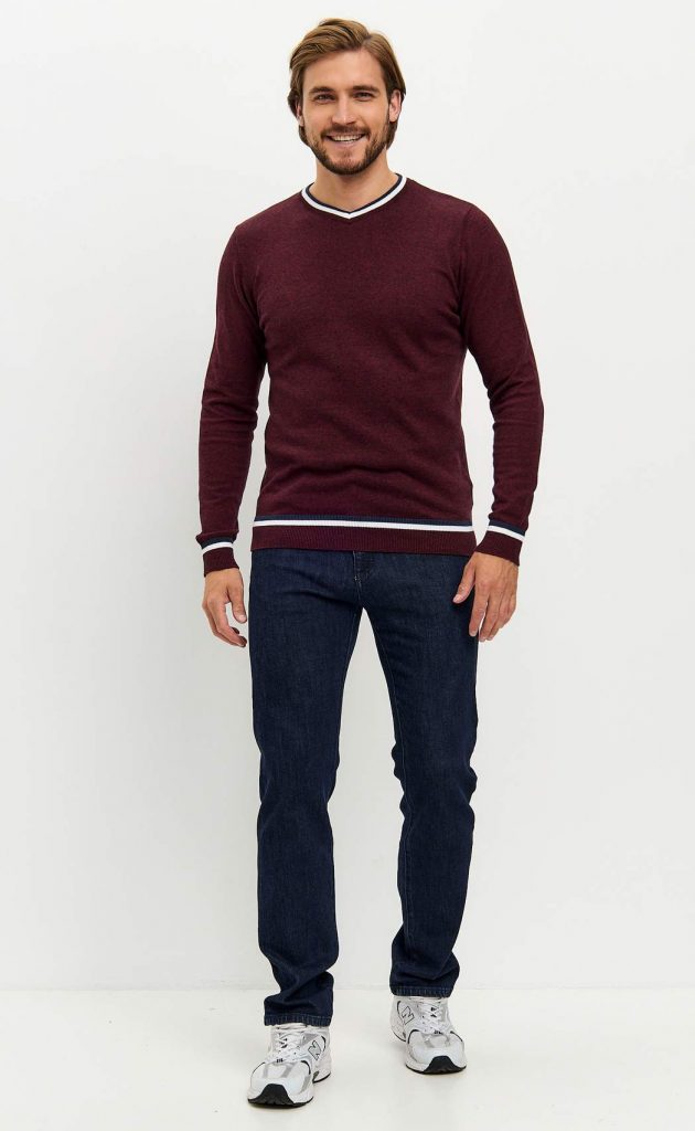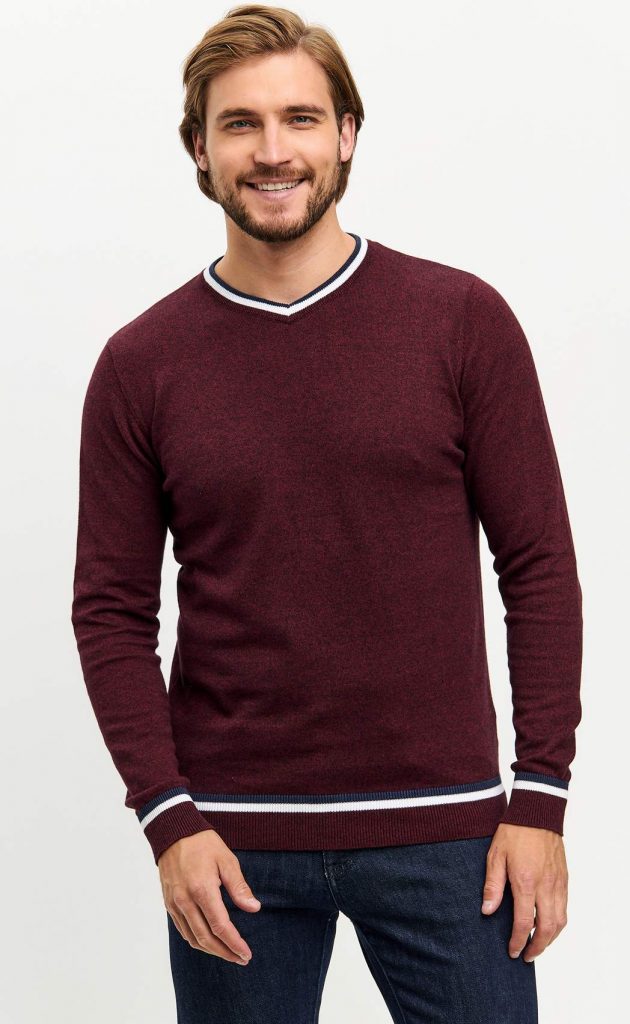 Наименование для сайта: Пуловер однотонный мужской с V-образной горловиной F021-15-0046 bordo melange