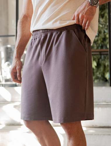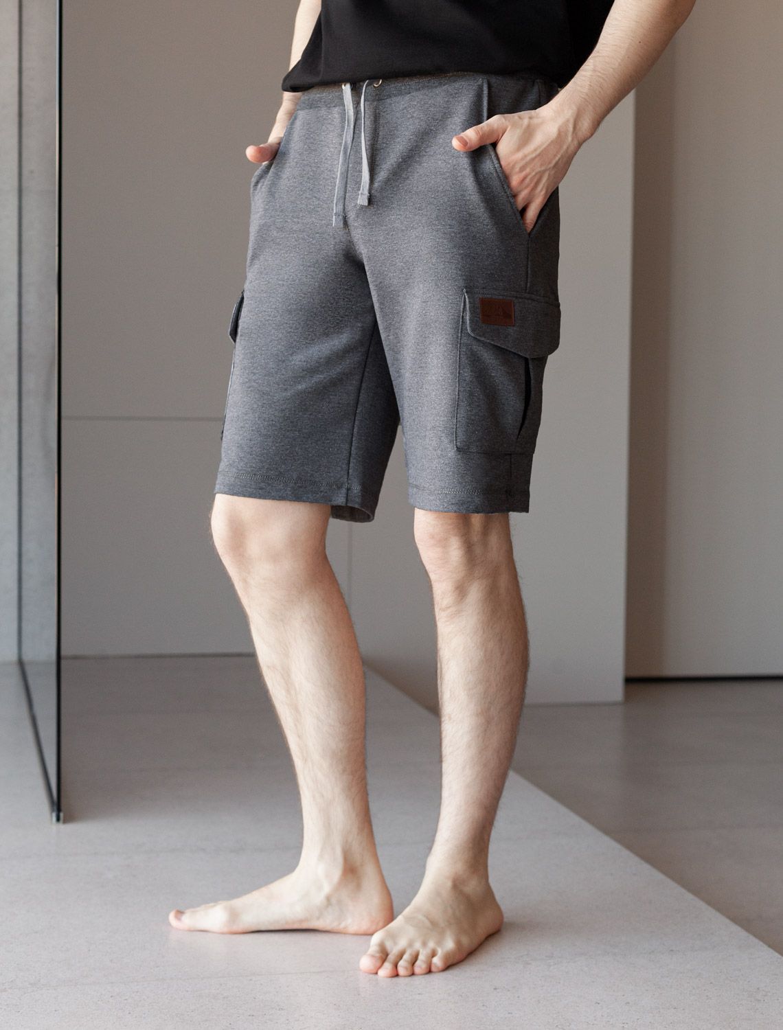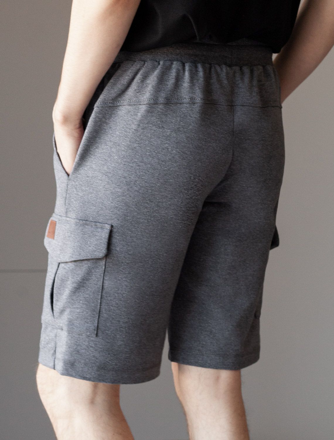 Шорты выполнены из легкого футера с эластаном. Мягкий материал хорошо пропускает воздух и поддерживает оптимальный микроклимат даже в жаркое время года, поэтому в изделии будет комфортно в течении всего дня. На кармане нашивка логотип бренда из эко-кожи.