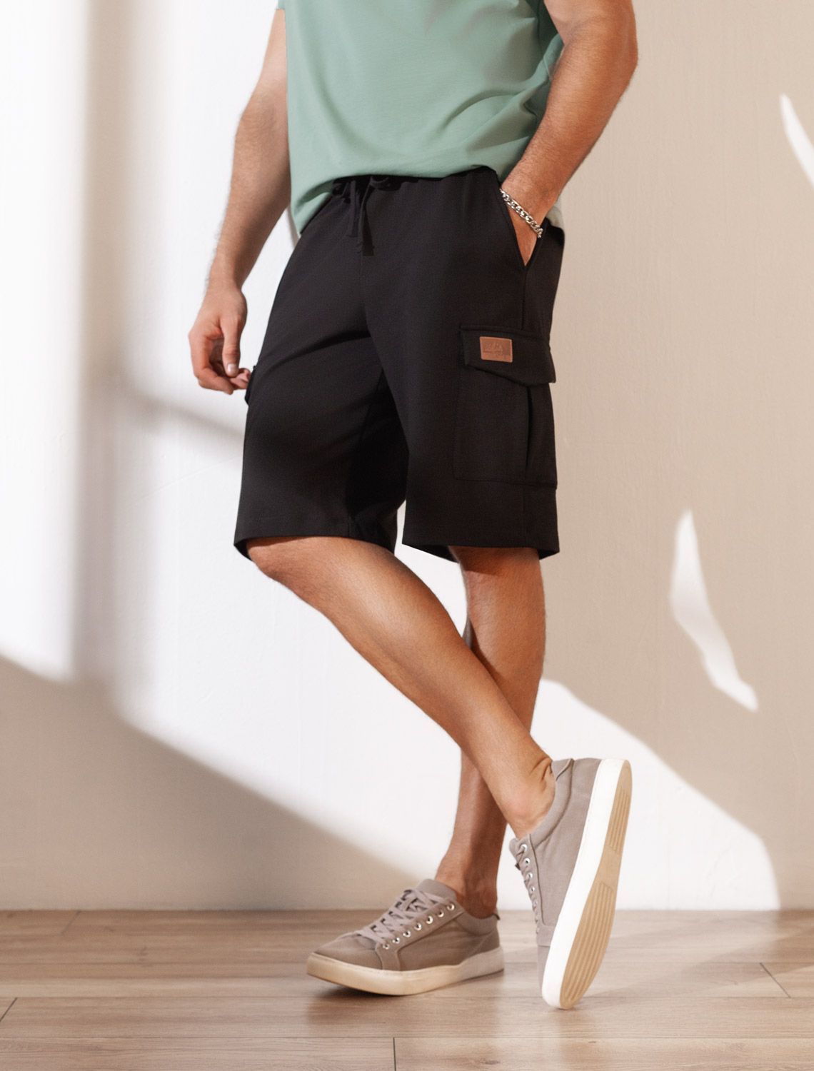 Шорты-карго из легкого футера U48.005 черный