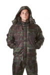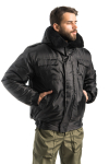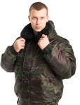 Куртка укороченная, с воротником - стойкой, с центральной бортовой застёжкой на молнию (тр. 8/2), с ветрозащитным клапаном, застёгивающимся на текстильную тесьму  "контакт". Куртка со съёмным меховым воротником, пристёгивающимся на пуговицы , со съёмным капюшоном, по лицевому вырезу  стягивающимся шнуром.На полочках обработаны два нижних прорезных кармана с листочкой и два верхних накладных кармана-книжки  с клапанами, застёгивающимися на тесьму "контакт".Спинка цельнокроёная.Рукава втачные из двух частей, с манжетами, притаченными по низу, собранными на эластичную тесьму.В области плечевых швов расположены погоны-хлястики, прикреплённые пуговицами.Куртка на притачном поясе, собранном на две эластичные ленты.