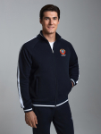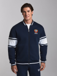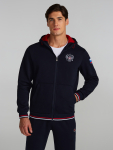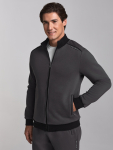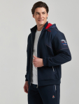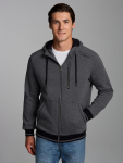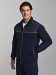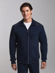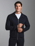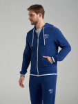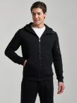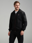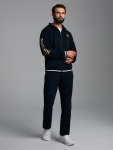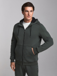 Брюки мужские из плотного и мягкого хлопкового трикотажного полотна с изнаночным начесом. Брюки зауженного силуэта с прорезными карманами, с открытой молнией.