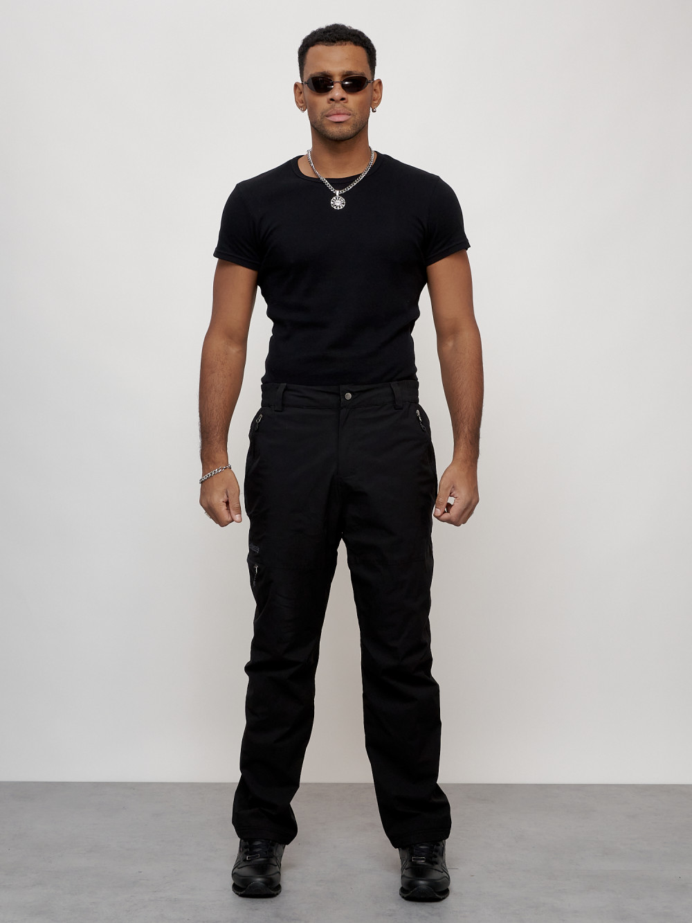 Брюки утепленный мужской зимние спортивные черного цвета 21137Ch