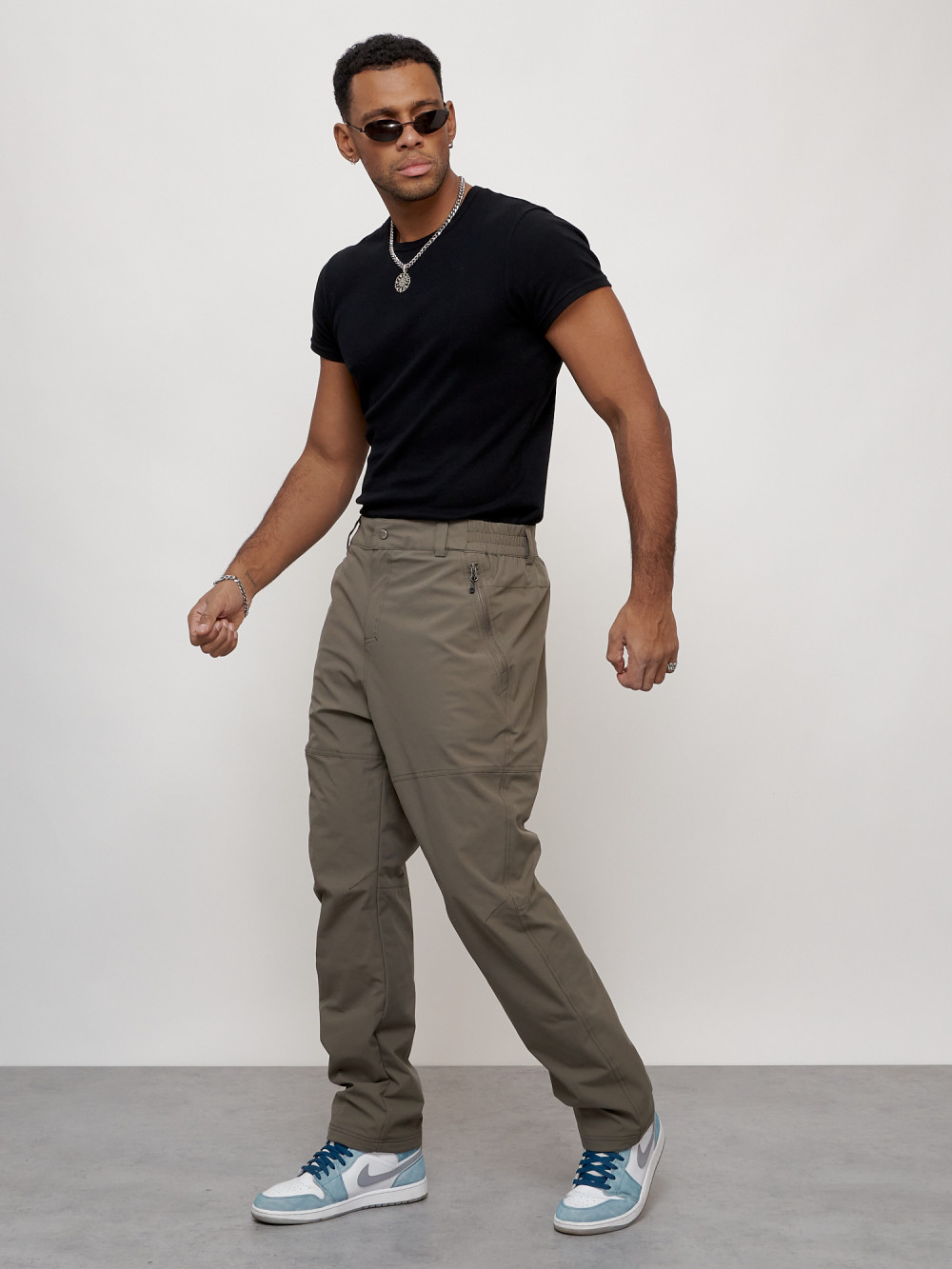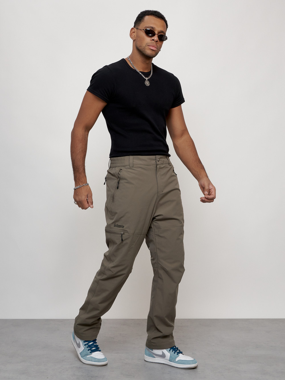 Брюки утепленный мужской зимние спортивные коричневого цвета 21137K