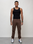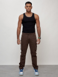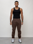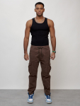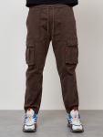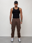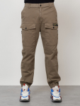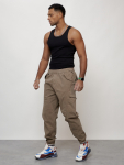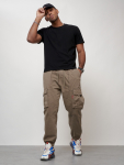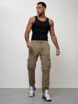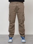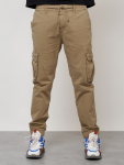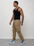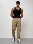 Джинсы карго мужские с накладными карманами бежевого цвета 2403-1B
