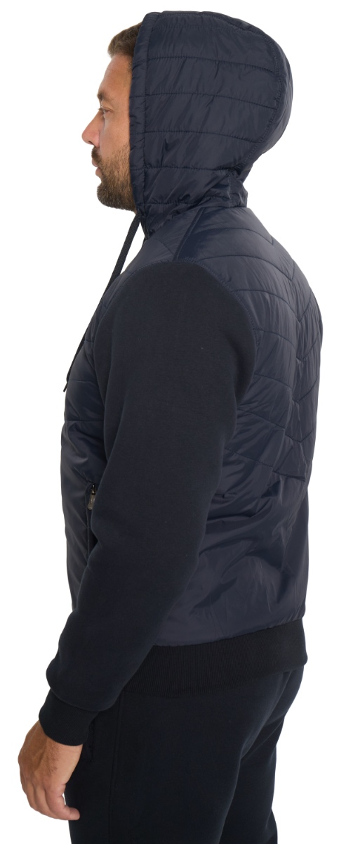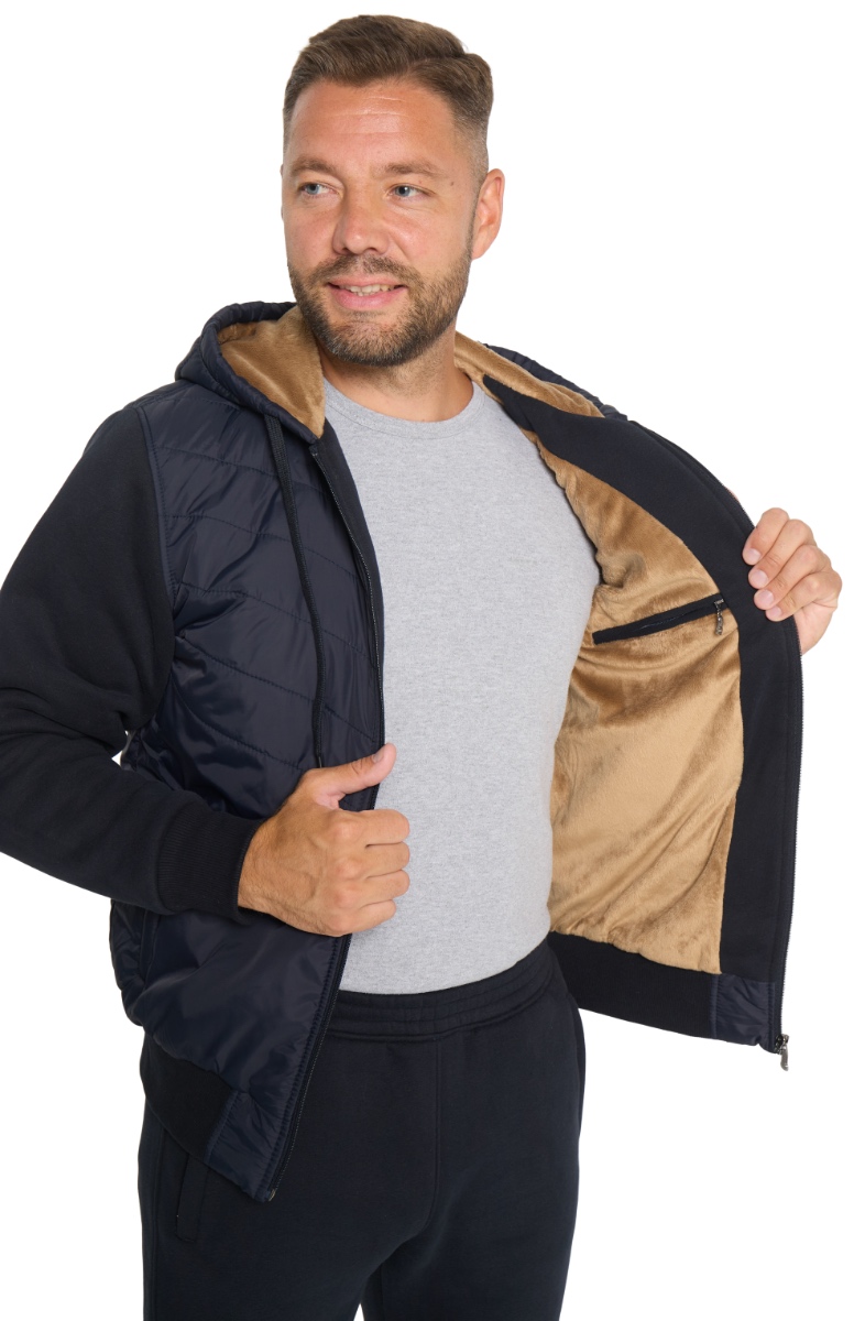 Зимний трикотажный костюм. Утеплённая куртка с поясом из кашкорсе и капюшоном, ширина которого регулируется шнурком. Утеплитель - искусственный мех "вельбоа", мягкий и приятный на ощупь. Полочки, спинка, задняя кокетка. капюшон, отшиты из стёжки (стёганое полотно, представляющее собой прошитые насквозь плащевую ткань и синтепон), рукава и бока - из 3-х ниточного футера. Передние карманы на молниях под листочками. На внутренней стороне справа – карман, фиксирующийся молнией. Брюки с поясом на резинке. С внутренней стороны в пояс вставлен шнурок. Брючины прямые. Передние карманы на молниях под листочками. Изделие удобное и практичное. Влагозащитное покрытие ткани куртки позволяет чувствовать себя комфортно на моросящем дожде и во время снегопада. Начёс с внутренней стороны полотна, синтепон и подкладка из меха надёжно блокируют холод. Костюм оценят все любители активного отдыха в зимний период.