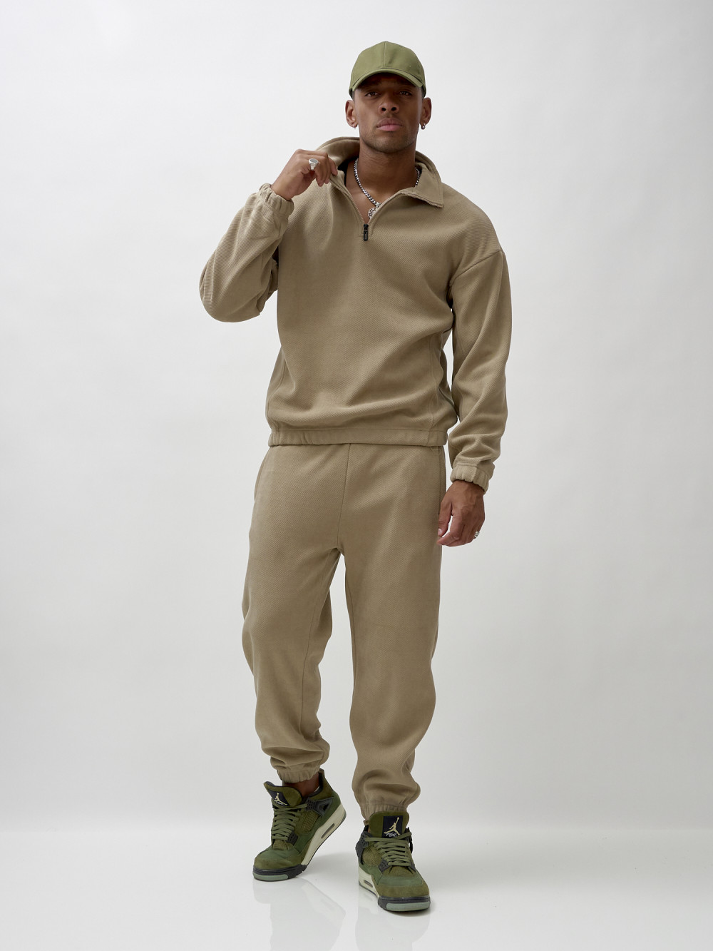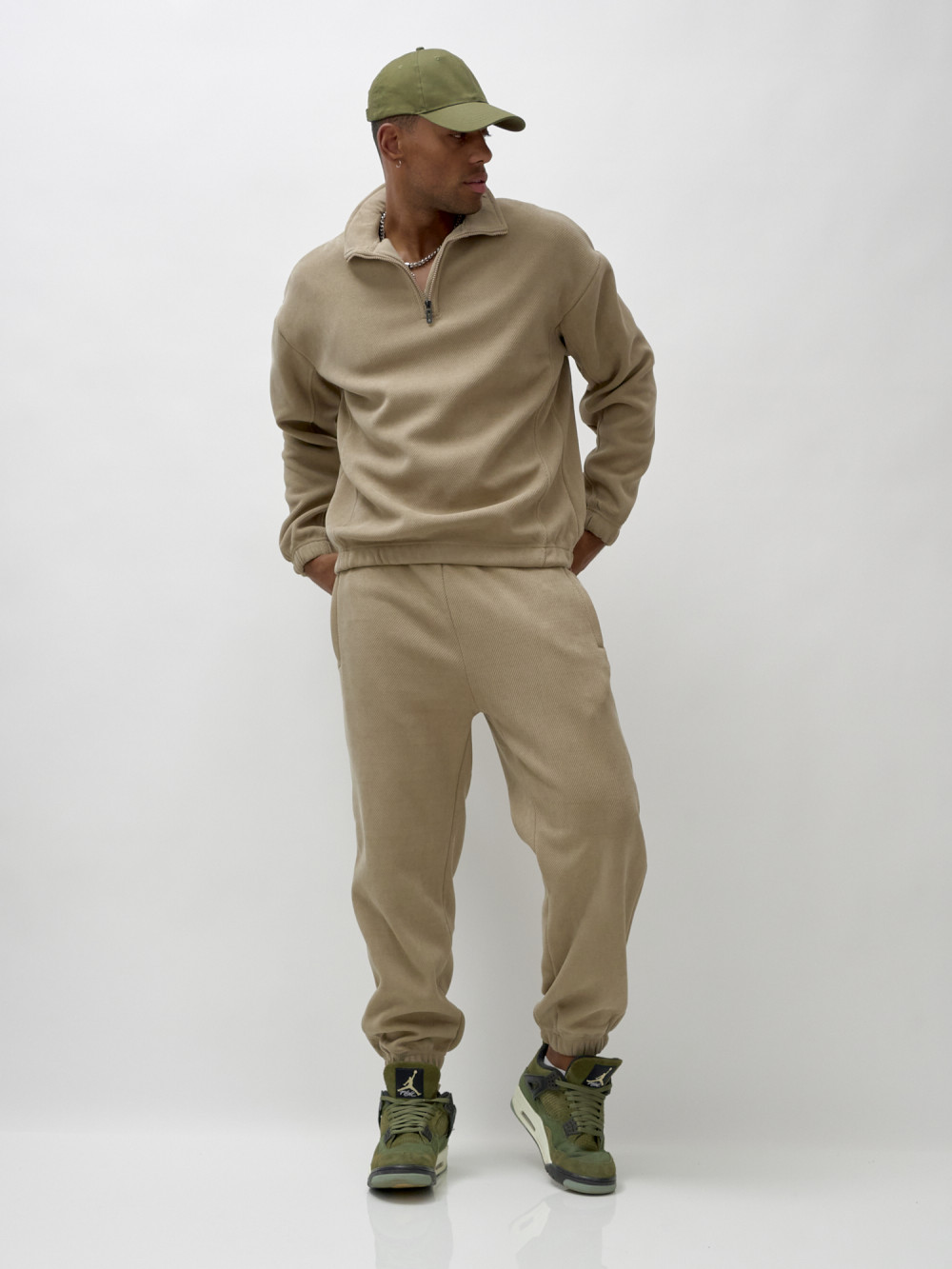 Спортивный костюм мужской демисезонный на флисе бежевого цвета 331B