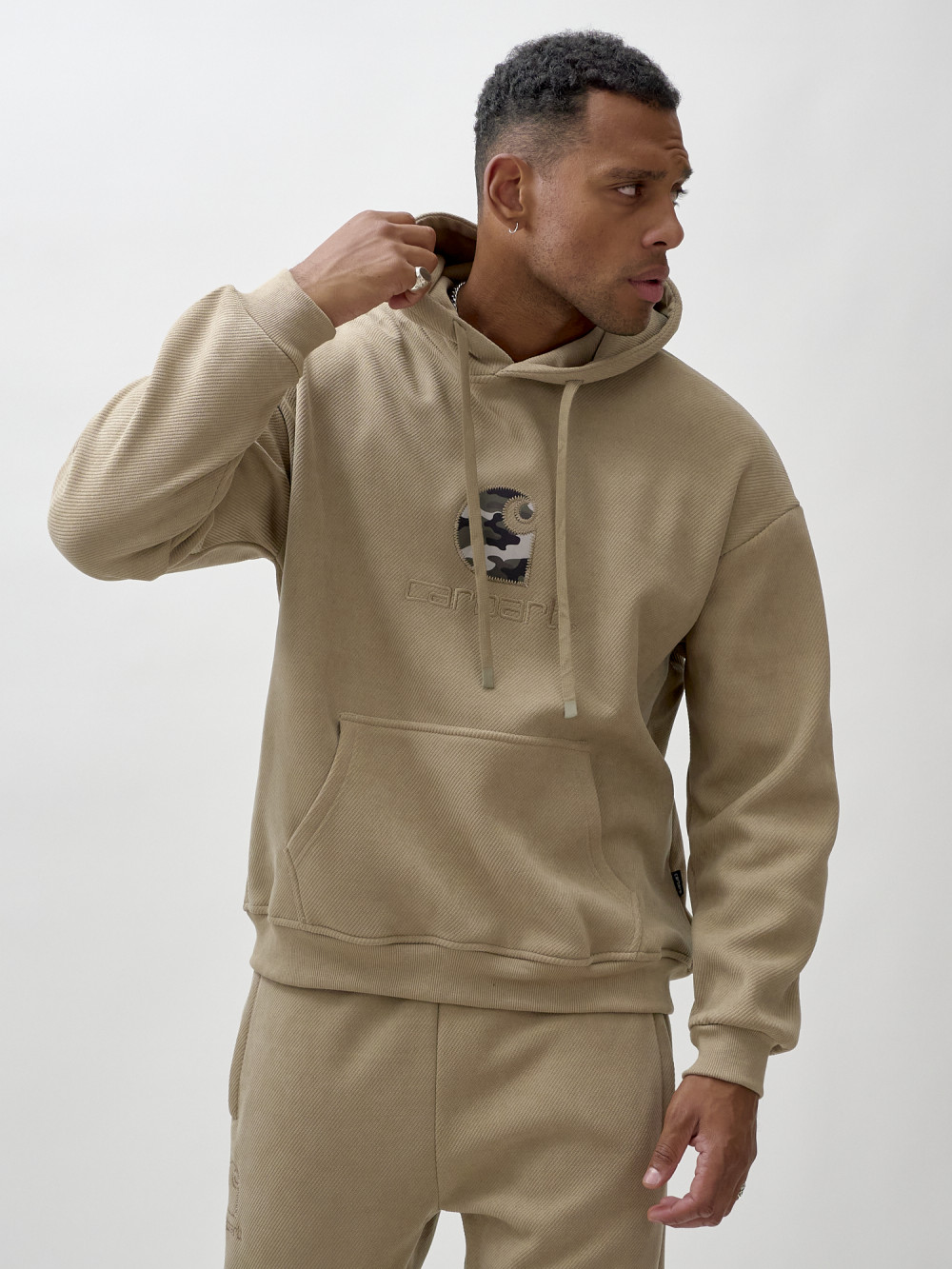 - Худи: Элемент с глубоким несъемным капюшоном, который регулируется шнурком, защитит вас от ветра и холода. Удобный карман-кенгуру не только добавляет функциональности, но и создает стильный вид.